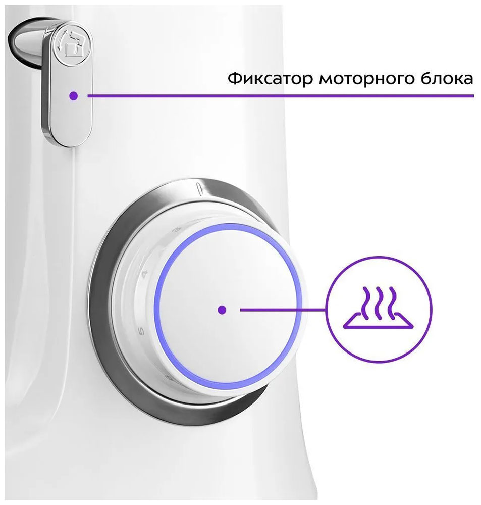 Прорезиненные ножки с присосками прочно фиксируют миксер на столе. Это также снижает шум во время смешивания ингредиентов.