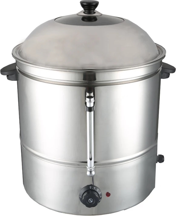 Есть мерное стекло, позволяющее отслеживать уровень воды. Внутри имеется перфорированная вставка для удобной загрузки кукурузы. Корпус выполнен из нержавеющей стали.