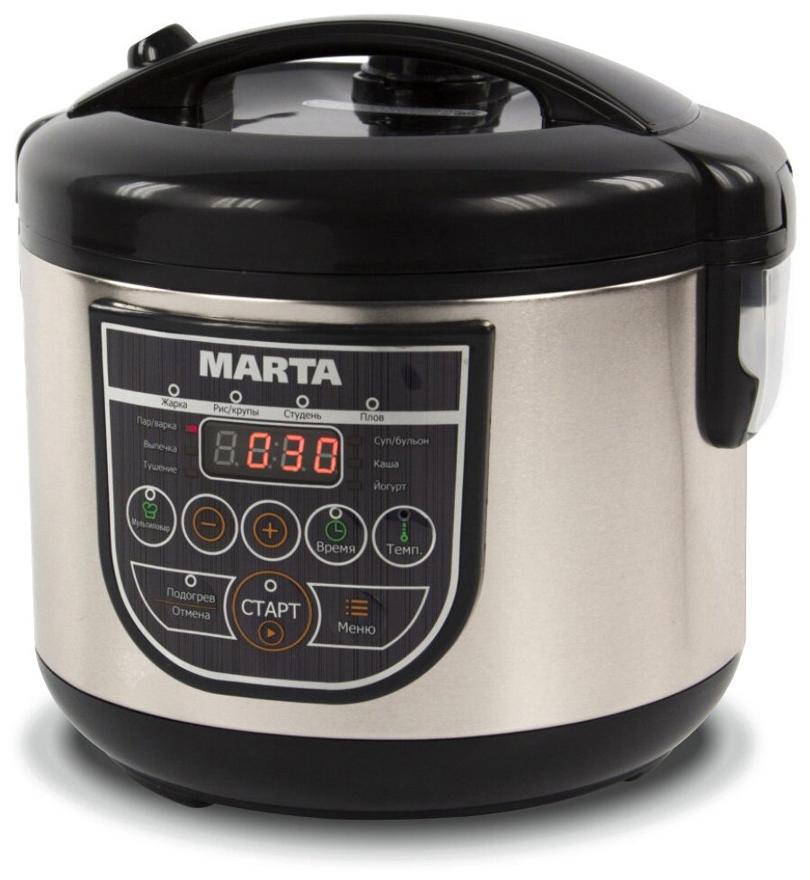 Многофункциональная мультиварка Marta MT-4324 станет незаменимым помощником на вашей кухне. Множество встроенных программ позволяет без труда приготовить различные блюда. С помощью режима Мультиповар вы можете приготовить любимое блюдо, установив вручную необходимое время и температуру. Функция поддержания тепла включается автоматически по завершении работы программы и поддерживает температуру готового блюда в течение 24 часов, при необходимости автоподогрев можно отключить. Съёмная чаша отлично распределяет тепло, обеспечивая равномерное приготовление всех ингредиентов. Экологически безопасное антипригарное покрытие позволяет готовить с минимальным количеством масла, сохраняя вкусовые качества и аромат готового блюда.