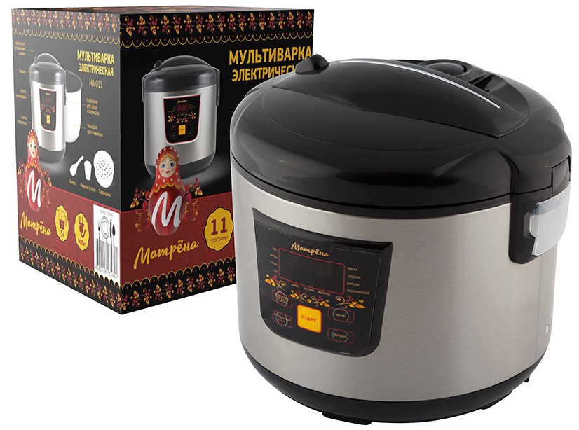 Эта мультиварка может послужить незаменимым кухонным прибором. Ведь устройство может и жарить, и варить, и запекать. И весь этот потенциал заключен в рамках компактного и легкого корпуса. Общая вместительность камеры нагрева составляет 5 л. Съемная чаша защищена антипригарным покрытием. Мощность нагрева — 900 Вт. Главным преимуществом аппарата является возможность термообработки без непосредственного участия пользователя. То есть повару не нужно помешивать консистенцию. Оптимальный уровень влажности и нагрева регулируется самим прибором, а покрытие чаши предотвращает пригорание. Мультиварка Matrena MA-011 имеет 11 программ автоприготовления. Прибор уверенно готовит любые первые и вторые блюда, а также закуски и выпечку. Функция отсрочки старта позволяет завершить приготовление перед самым приходом пользователя с работы. А если пользователь задержится дольше задуманного, то выручит функция подогрева. Блюдо гарантированно не остынет до положенного времени! Модель даст возможность готовить просто и со вкусом. Объема чаши хватит, чтобы обеспечить сытный рацион для 3-5 человек. Мультиварка позволяет готовить в 2 раза быстрее, чем при использовании стандартной кухонной плиты. Ведь камера нагрева распределяет тепло предельно равномерно, со всех сторон.