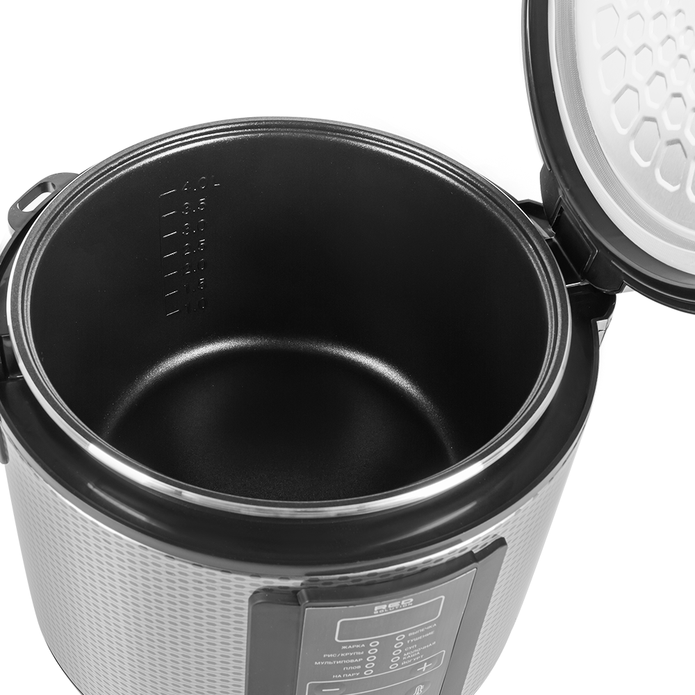 Комплектация книга рецептов, контейнер для приготовления на пару, мерный стакан, мультиварка с установленной внутрь чашей, плоская ложка, руководство по эксплуатации, сервисная книжка, черпак, шнур электропитания