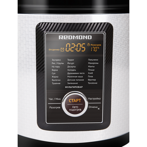 Мультиварка REDMOND RMC-M23 – усовершенствованная, мощная и вместительная модель в надёжном металлическом корпусе с достойным набором функций, привлекающая своим сдержанным дизайном и доступностью.
