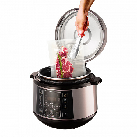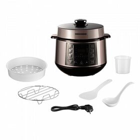 В мультиварке-скороварке REDMOND RMC-PM505 многие блюда будут готовы в 2 раза быстрее, чем на плите или в духовом шкафу. Ускорить готовность позволяет высокое давление, которое мультиварка-скороварка создает в камере прибора при работе на некоторых программах. Ароматный и нежный гуляш, наваристый суп – с RMC-PM505 эти блюда окажутся на столе буквально через 20-25 минут.