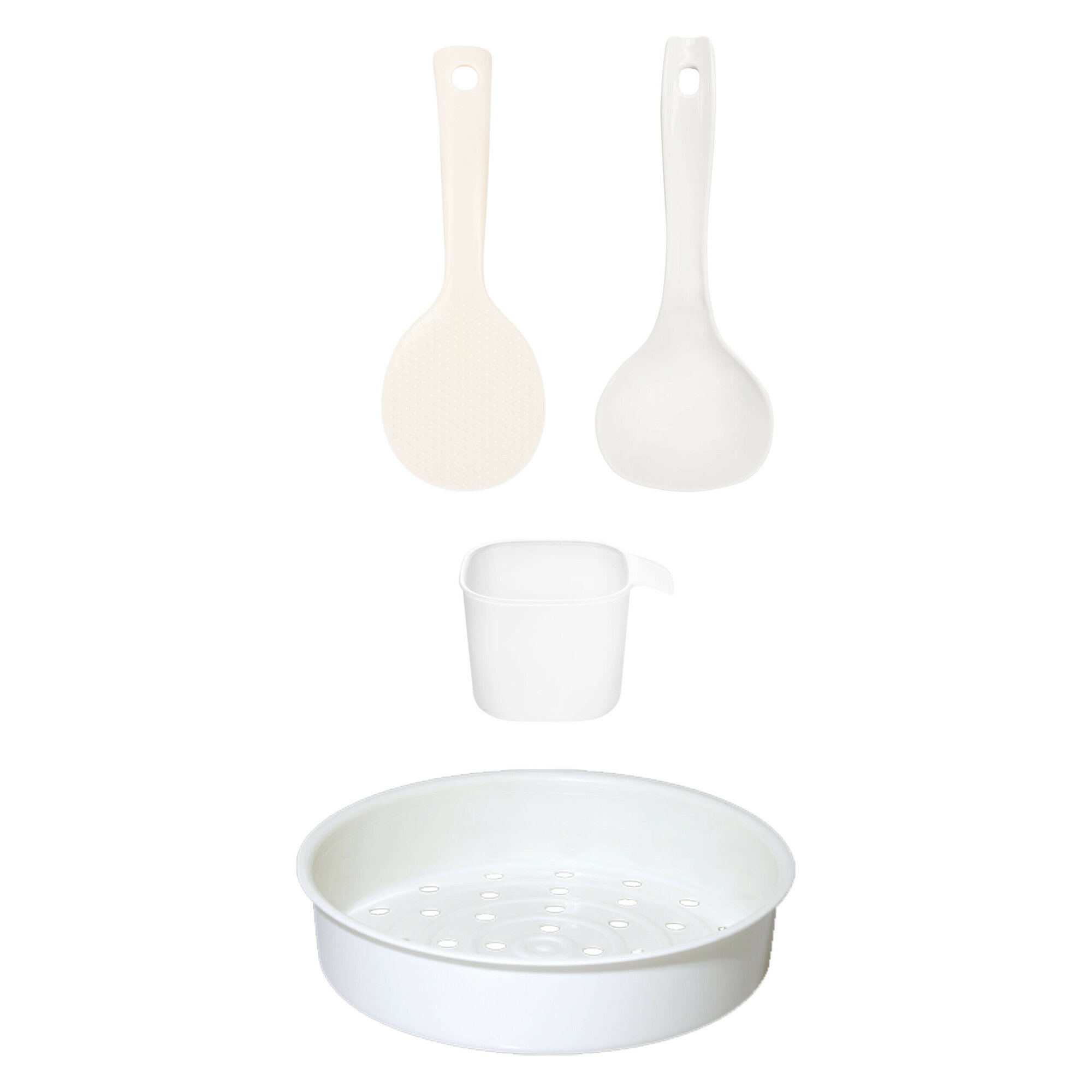 Комплектация: корзина для приготовления на пару, мерный стакан, плоская лопатка, половник, книга рецептов