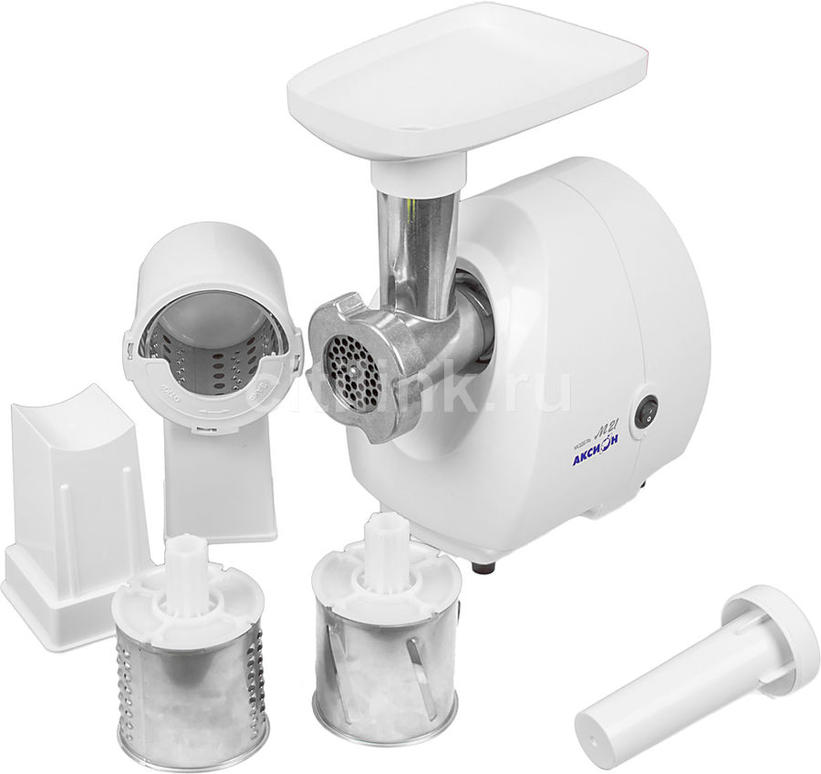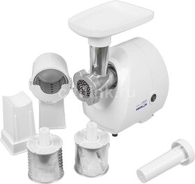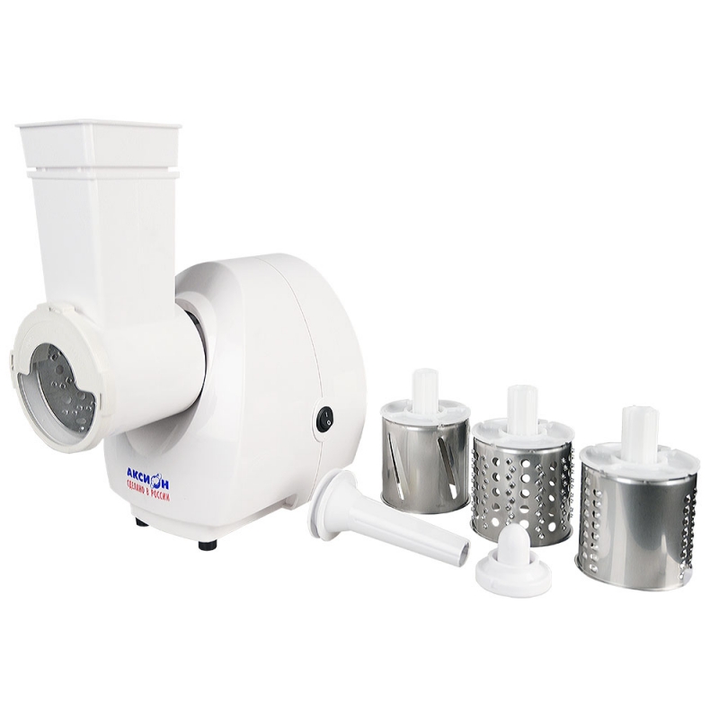 комплектуется приставкой - овощерезкой с тремя сменными барабанами. Предназначена для резки продуктов ломтиками, мелкого и крупного шинкования овощей.