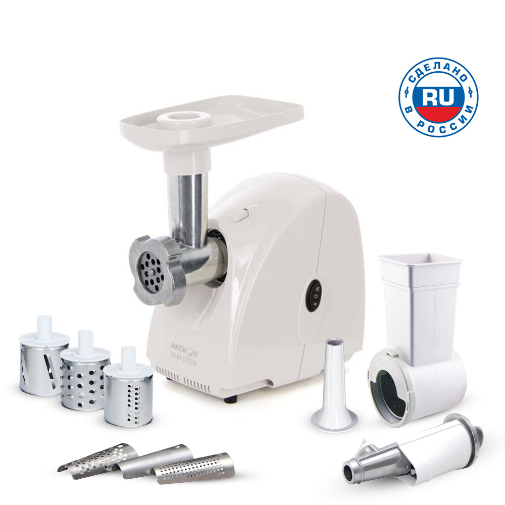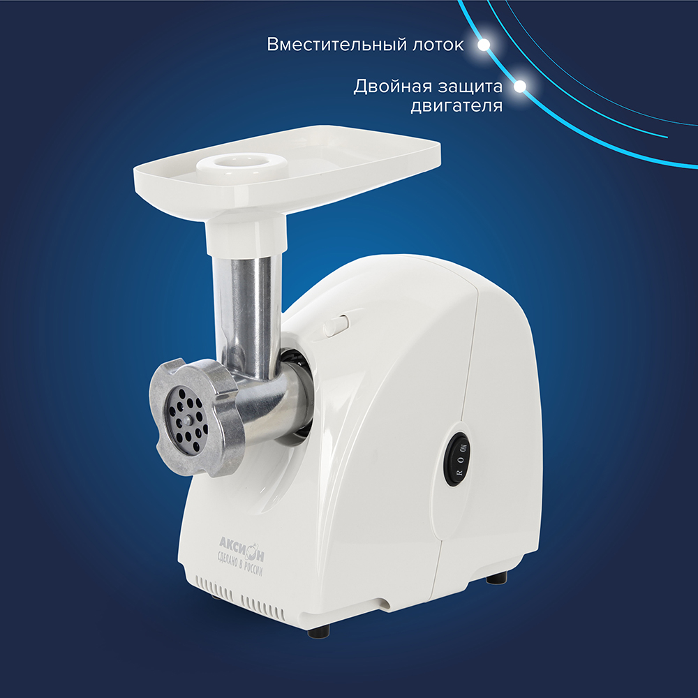 Многофункциональная и удобная мясорубка АКСИОН М 31.02 станет отличным подарком для хозяйки. Она значительно упростит работу на кухне, взяв на себя все скучные, но необходимые операции. Терка может измельчить овощи и фрукты до требуемого состояния. Для этого нужно только прикрепить насадку и выбрать барабан с отверстиями подходящего размера. Если нужно порезать ингредиенты на салат, то овощерезка справится с этой задачей в считанные секунды, так как производительность агрегата – 1,6 кг в минуту. Мясорубка АКСИОН М 31.02 перемелет любое мясо до нужного состояния. Используйте один из перфорированных дисков для фарша и получите массу, состоящую из частичек необходимой величины. Дети оценят насадку для приготовления соков с мякотью и нектаров. Для этого лучше использовать мягкие сорта или ягоды, но даже если что застряло в мясорубке и заблокировало ее работу, всегда можно использовать функцию реверса.
