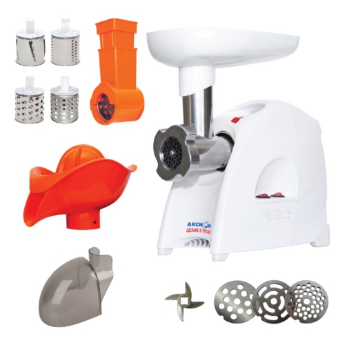 Насадки: для кеббе, для набивки сосисок и колбас, насадка-терка, для шинковки, насадка-соковыжималка