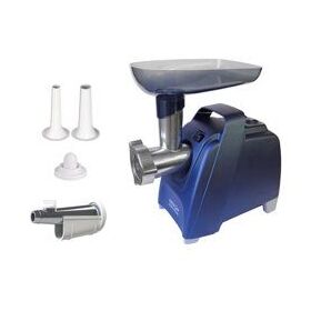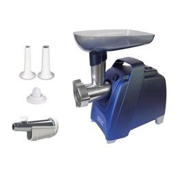 Максимальная мощность - 2000 Вт Максимальная производительность – 4 кг/мин. В комплекте: приставка для набивки колбас; шнековая соковыжималка; нож с саблевидной режущей кромкой из нержавеющей стали; 2 решетки увеличенной толщины из нержавеющей стали с отверстиями Ø 4,9 мм и 8,5 мм, 1 запасной металлический колпачок. Преимущества: • Двойная защита двигателя от перегрузки • Увеличенное время непрерывной работы – 30 минут • Функция «реверс» для предотвращения наматывания жилок на шнек • Хранение шнура питания, ножа и насадок в отсеке с откидной крышкой • Эргономичная гайка для удобной сборки/разборки мясорубки • Широкая ручка для переноски
