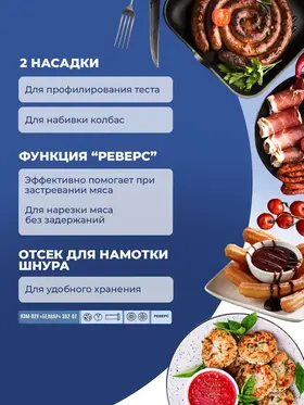 Для колбас/сосисок, Для печенья, Для фарша, Мясорубка