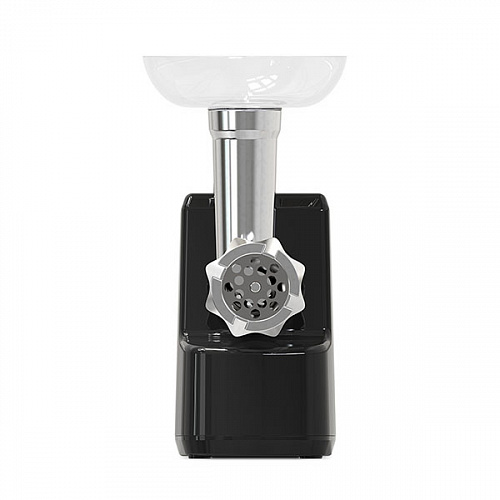 Блок мясорубки, загрузочный лоток, нож, шнек, фиксирующее кольцо, диски (2 шт), толкатель, руководство по эксплуатации