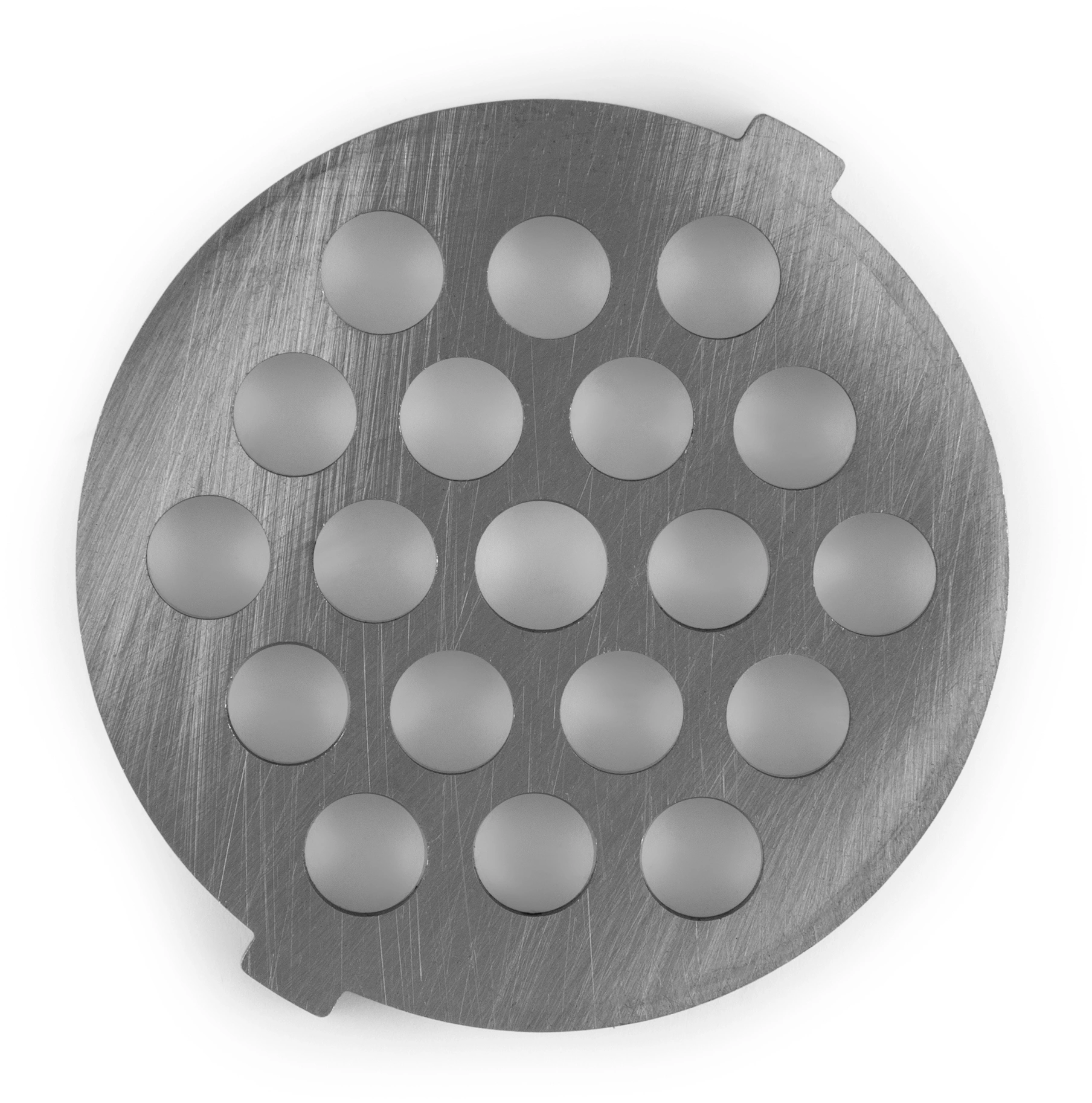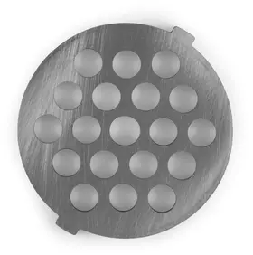Две решетки для фарша. Наличие в комплекте двух перфорированных решеток с отверстиями диаметром 5 и 7 мм обеспечивает возможность приготовления фарша необходимой фракции для различных блюд.
