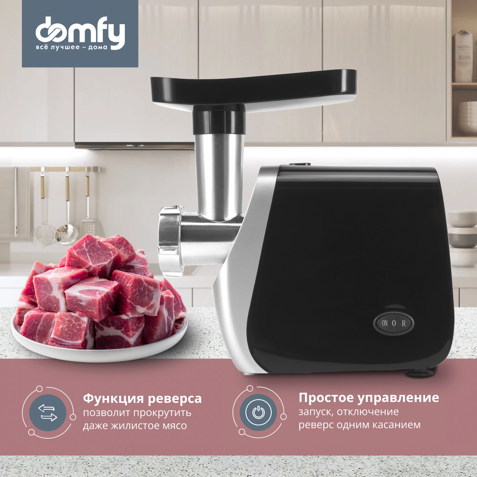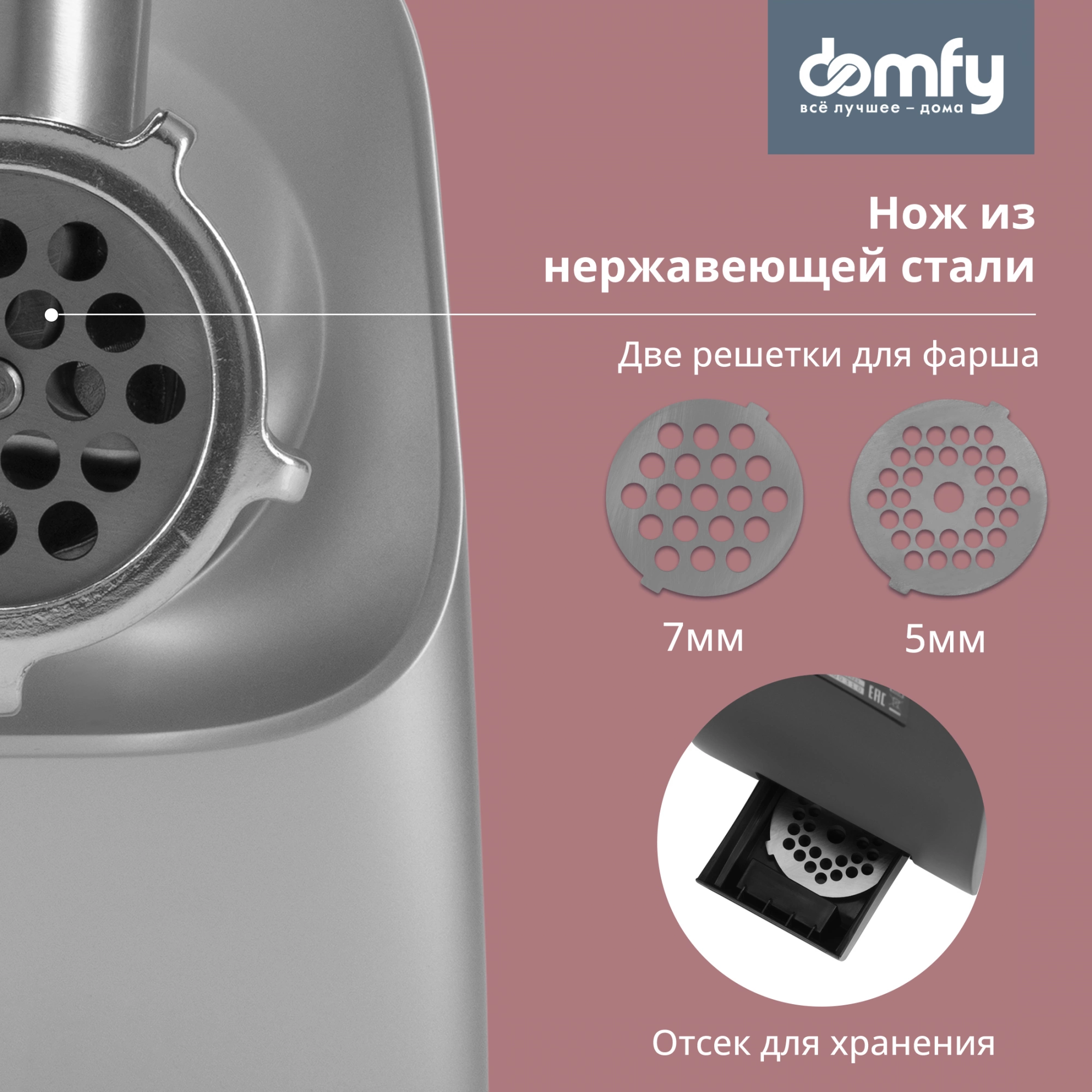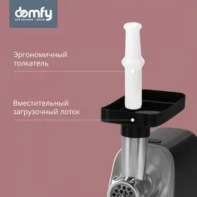 Высокая производительность. Электромясорубка DOMFY DSB-MG201 способна переработать до 2 кг мяса в минуту.