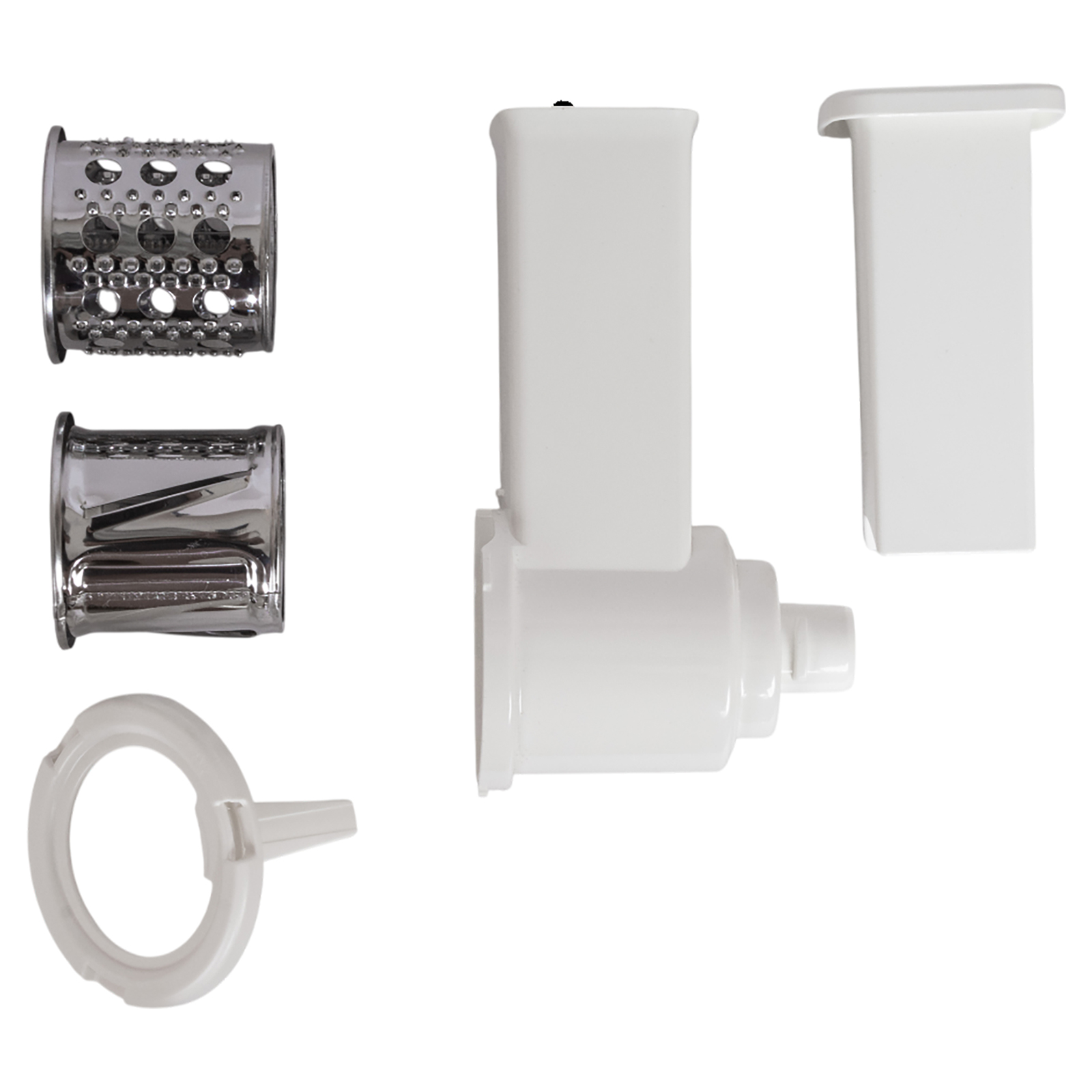 овощерезка с 2 барабанами (терка и шинковка) и толкатель для продуктов в комплекте