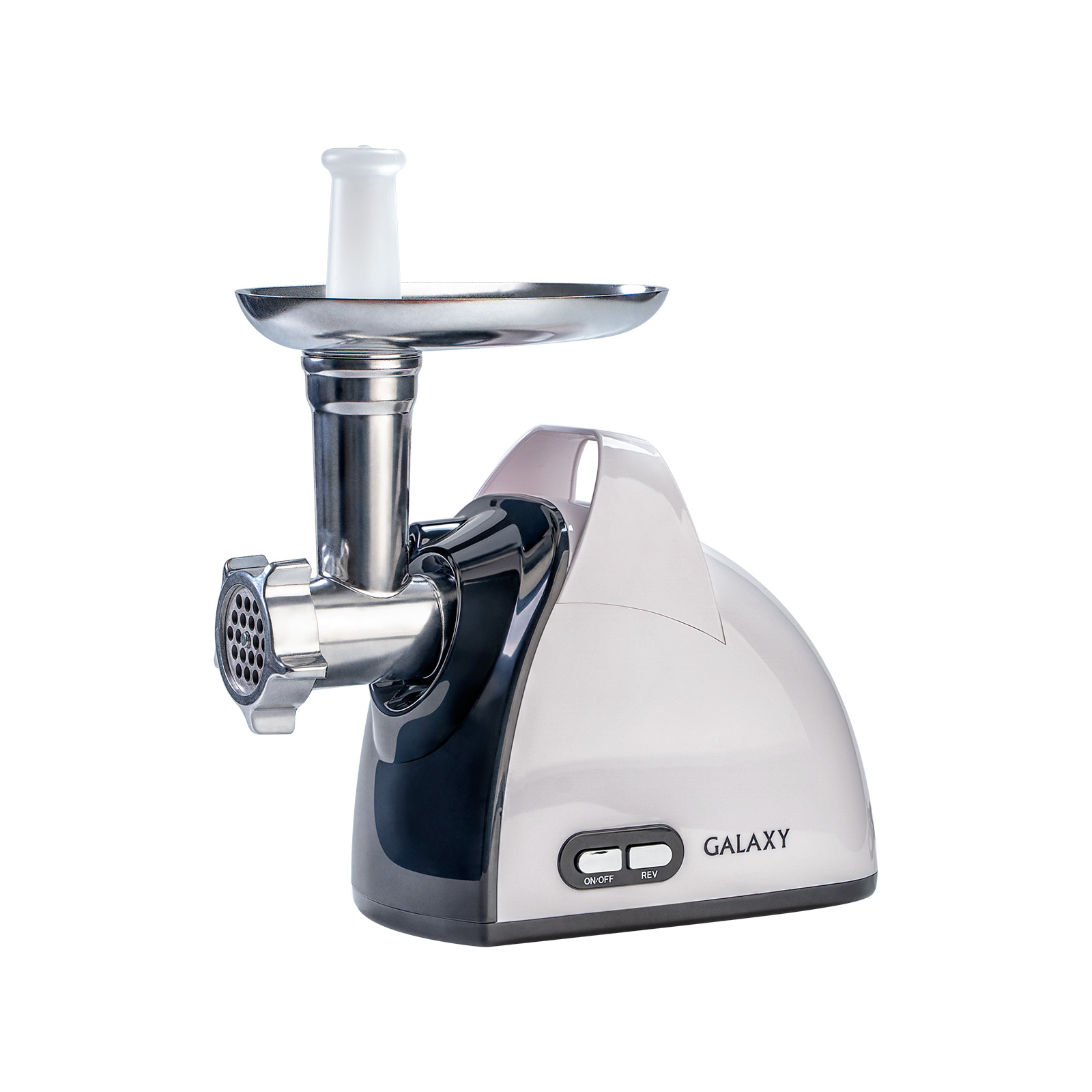 Мясорубка GALAXY имеет металлический лоток, который в отличие от пластикового не трескается, не окрашивается и не впитывает запах продуктов.