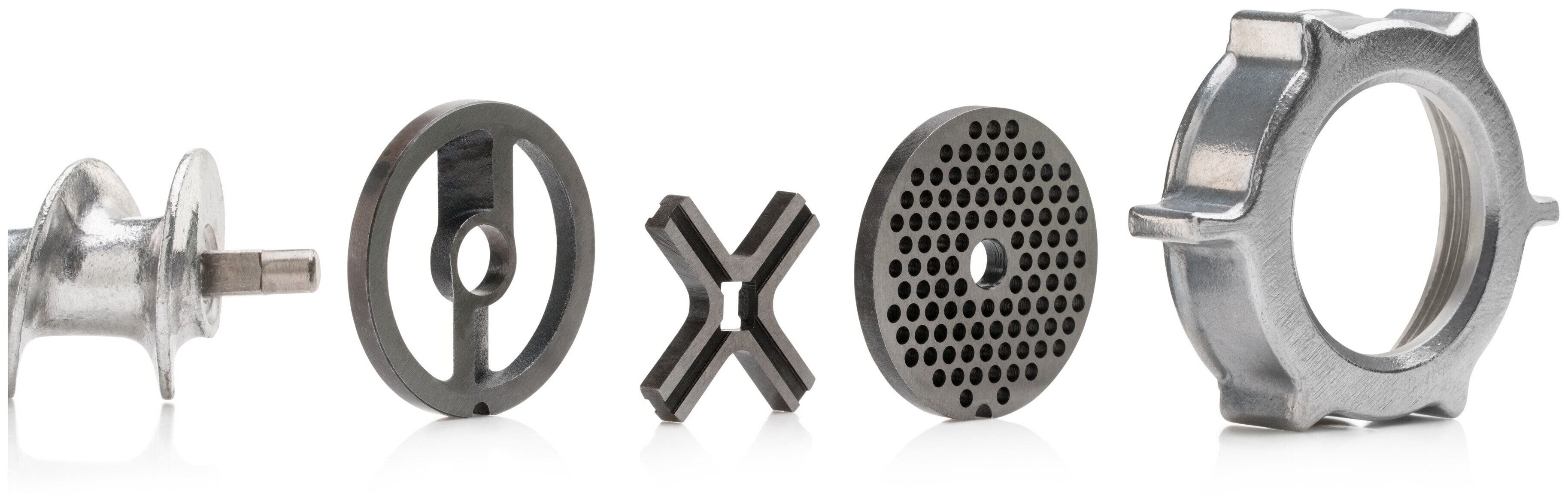 Диск для фарша: 3 в комплекте, диаметр отверстий 3 мм, 4.4 мм, 7 мм