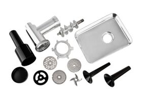 Комплектация: 1 нож, 3 решетки из нерж.стали, 2 насадки для колбасок