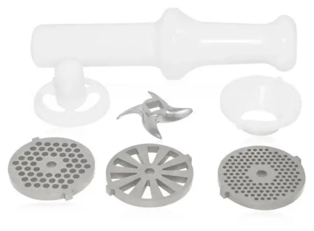 материал лотка: металл; количество насадок-терок: 3; количество насадок для шинковки: 1
