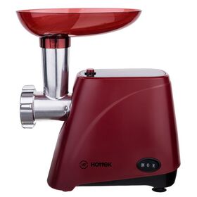 Мясорубка HT-976-004 выполнена из высококачественного пластика, в бордовом цвете. Максимальная (пиковая)* мощность 1800 Вт, номинальная* 300 Вт. Производительность – 1,8 кг/мин. Функция реверс поможет очистить шнек от жил или случайно попавшей косточки. Внутренние детали – шнек, ножи, решетки – сделаны из металла. Имеется защита от перегрева. В комплект поставки входят 2 диска для приготовления фарша, насадки для приготовления кеббе и сосисок.