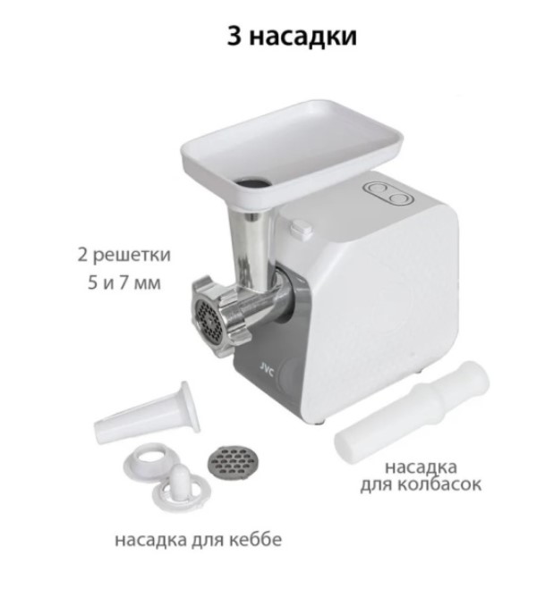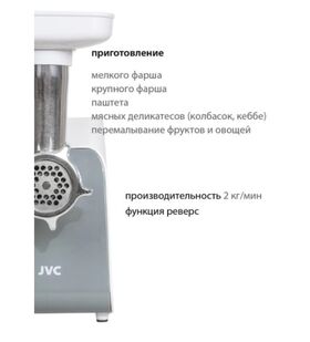 Электрическая мясорубка высокой производительности JVC JK-MG125 c 2 решетками, насадками для колбасок и кеббе – это стильная, практичная и функциональная помощница на вашей кухне, призвана облегчить ручной труд хозяйки.