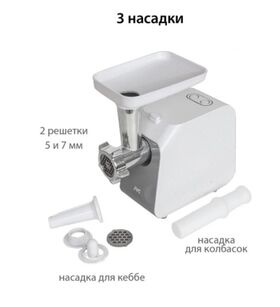 Электрическая мясорубка JVC JK-MG125 в стильном компактном корпусе из ABS пластика с легкостью справится с поставленной задачей и станет незаменимой помощницей при приготовлении мясных блюд. Модель оснащена 2 решетками 5 и 7 мм для приготовления разного вида фарша. Насадки для колбасок и кеббе помогут хозяйкам сделать колбаски ровными и красивыми, подходящими как для повседневного ужина, так и для праздничного стола.