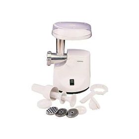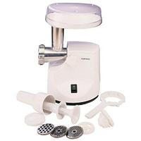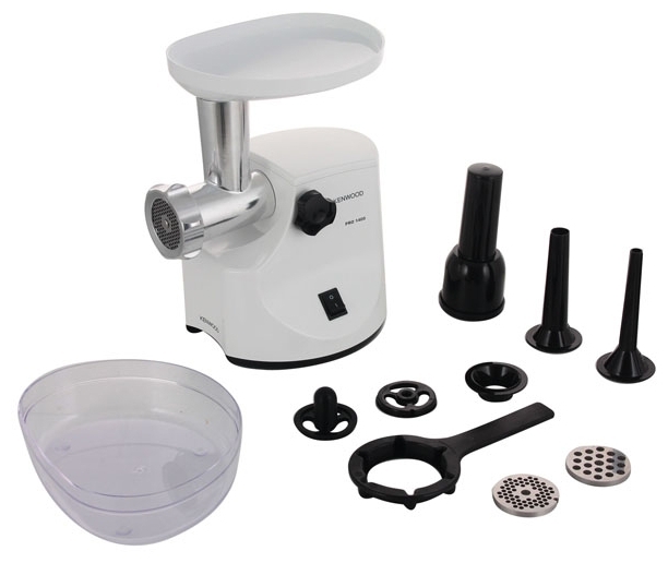 Электромясорубка Kenwood MG450 – это надежный и практичный прибор, который позволит с большей скоростью готовить мясные продукты. Модель обладает серьезным показателем мощности , что позволяющим всего за одну минуту обработать большое количество мяса – больше 1 кг. Данное устройство значительно ускоряет приготовление домашних колбас и фарша. Мясорубка имеет всего одну скорость, но ее хватает для быстрой обработки мясных продуктов. БЕЗУПРЕЧНОСТЬ СБОРКИ Kenwood MG450 изготовлена из материалов высокого качества, прибор надежен, прочен и долговечен. Устройство устойчиво к механическим повреждениям. ПРОСТОТА ИСПОЛЬЗОВАНИЯ Управление электромясорубкой осуществляется при помощи всего лишь одной кнопки, расположенной в левой части корпуса. Изделие имеет небольшие габариты, что позволяет разместить прибор практически в любом месте на вашей кухне. Модель включает в себя специальные отсеки, предназначенные для хранения кабеля и насадок. ИДЕАЛЬНАЯ ЧИСТОТА Наличие режима реверса дает возможность тратить значительно меньше времени на очистку мясорубки. Стоит только запустить обратную прокрутку и застрявшее мясо само выходит из устройства.