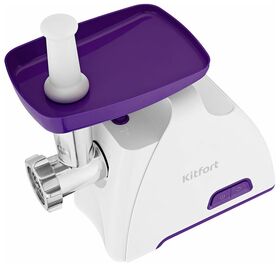 Мясорубка оснащена мощным мотором. Корпус устройства выполнен из пластика. Задние ножки мясорубки с присосками, что повышает устойчивость устройства во время работы. Производительность мясорубки - 1,1 кг фарша в минуту.