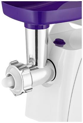 Одна скорость работы одна кнопка включения/выключения. Функция реверс обеспечит очистку мясорубки без разборки: если на нож намоталась жила, то можно сделать обратный ход, убрать ненужный элемент мяса и продолжить работу.