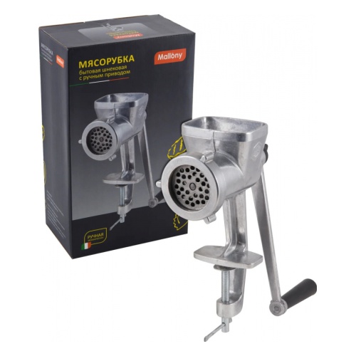 Мясорубка ручная, механическая. Изготовлена из пищевого алюминия марки АК5М2п.