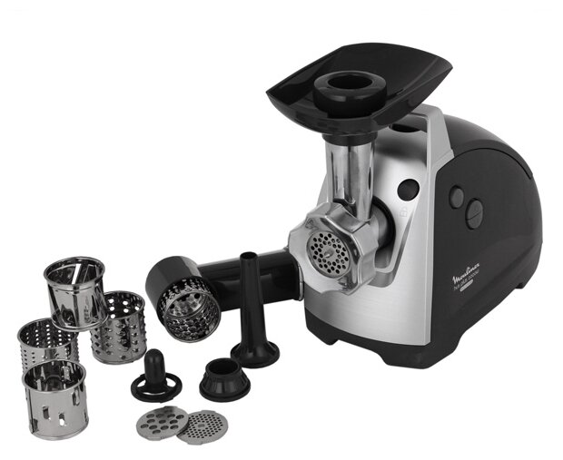 материал лотка: пластик; количество насадок для приготовления колбас: 1; количество насадок-терок: 3; количество насадок для шинковки: 2