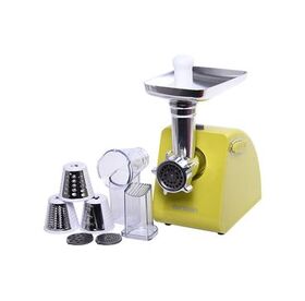 Комплектация 3 решетки для фарша из нержавеющей стали (3 мм, 5 мм и 7 мм), 2 толкателя, насадка для шинковки, насадка для кеббе, 2 насадки-терки, насадка для колбас, документация, загрузочный лоток, приставка-овощерезка
