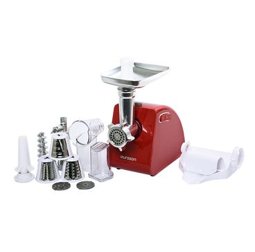 Комплектация коробка для хранения аксессуаров, насадка для колбасы и кеббе, насадка-соковыжималка, 3 решетки для фарша из нержавеющей стали (3 мм, 5 мм и 7 мм), 2 толкателя, насадка для шинковки, 2 насадки-терки, загрузочный лоток, приставка-овощерезка