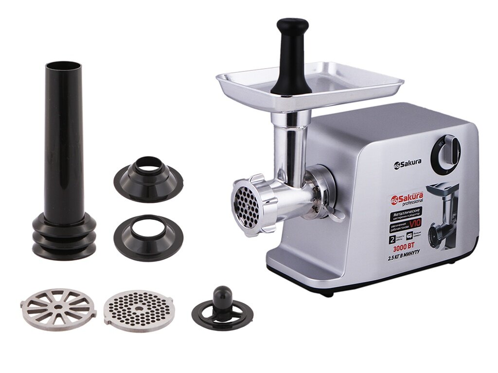 Насадки: 3 режущих диска, насадки для приготовления сосисок и колбасок кеббе