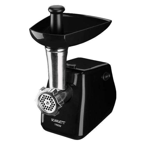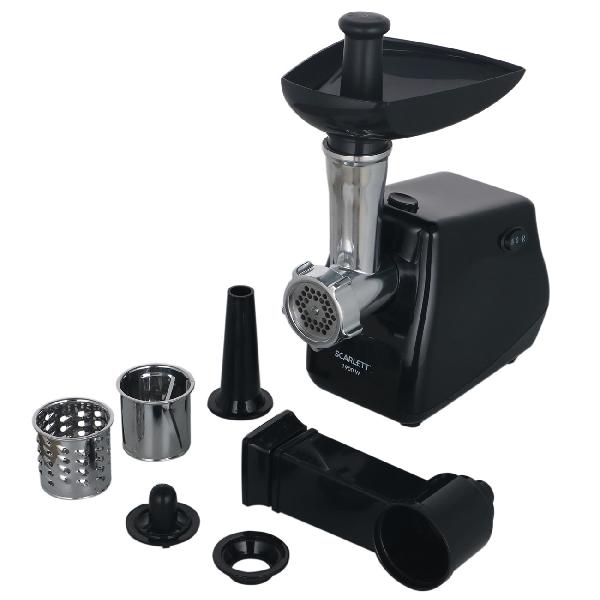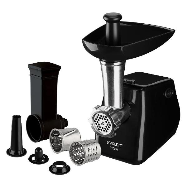 Мясорубка Scarlett SC-MG45M26 оптимальна для измельчения продуктов: мяса, рыбы, овощей. Реверс используется для извлечения застрявших кусочков. Для активации режима на корпусе имеется специальный переключатель. Производительность устройства мощностью 1900 Вт равна 2 кг/мин. В комплекте поставляются решетка, терка, кебе, овощерезка, шинковка, насадка для приготовления колбасы. Для предотвращения перегрева мотора модель отключается автоматически. С помощью толкателя обеспечивается безопасная загрузка продуктов.