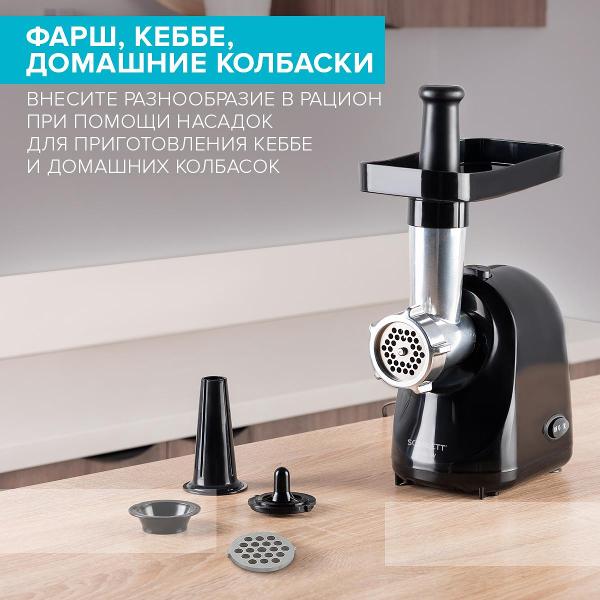 Мясорубка Scarlett SC-MG45S73 помогает быстро приготовить фарш из курицы, утки, кролика, свинины или говядины. Устройство оптимально для измельчения различных овощей. Контролировать консистенцию фарша можно с помощью металлических решеток с отверстиями диаметром 5 мм и 7 мм. Для безопасной загрузки продуктов используется пластиковый толкатель. Нож имеет острую заводскую заточку. Это дает возможность за минуту получить до 2 кг фарша. Благодаря широкой загрузочной емкости можно заранее подготовить продукты.
