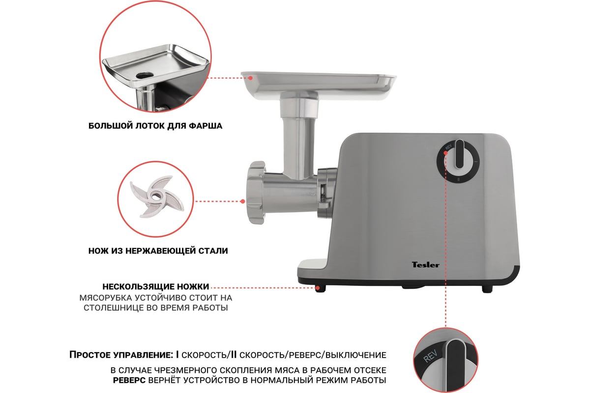 Мясорубка TESLER MG-1802C предназначена для заготовки фарша.