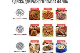Поставляется в к комплекте с несколькими насадками, благодаря чему позволяет подбирать степень измельчения.