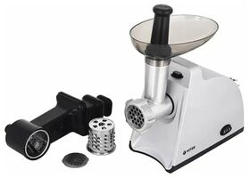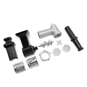 В комплектацию мясорубки входят две решётки с диаметром отверстий 5 и 7 мм, позволяющих приготовить фарш разной консистенции. Быстро замените насадку на барабан с тёркой или шинковкой, чтобы приготовить овощи для салата, рагу или натереть сыр для пиццы и пасты.