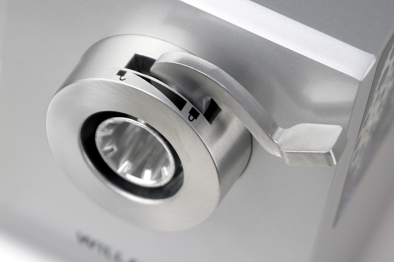 На корпусе расположен переключатель работы мясорубки. Положение «ON» для начала перемалывания продуктов. Кнопка «REV» для очистки рабочей камеры и вращения шнека в обратную сторону - РЕВЕРС.