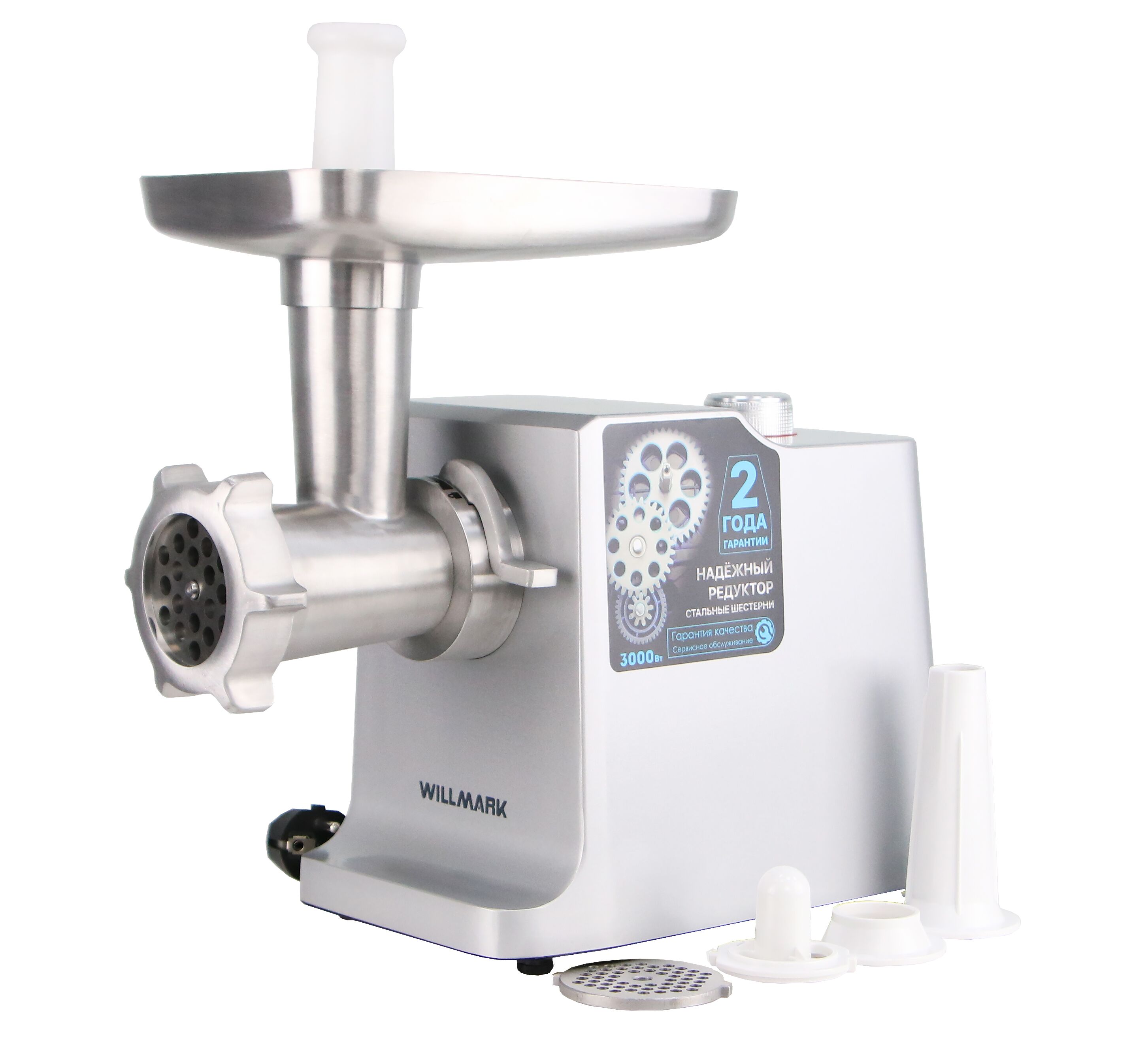 Электрическая мясорубка WILLMARK WMG-3080S с цельнометаллическим корпусом обладает расширенным набором функций и аксессуаров.