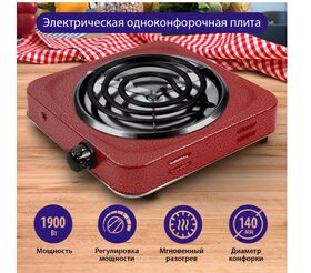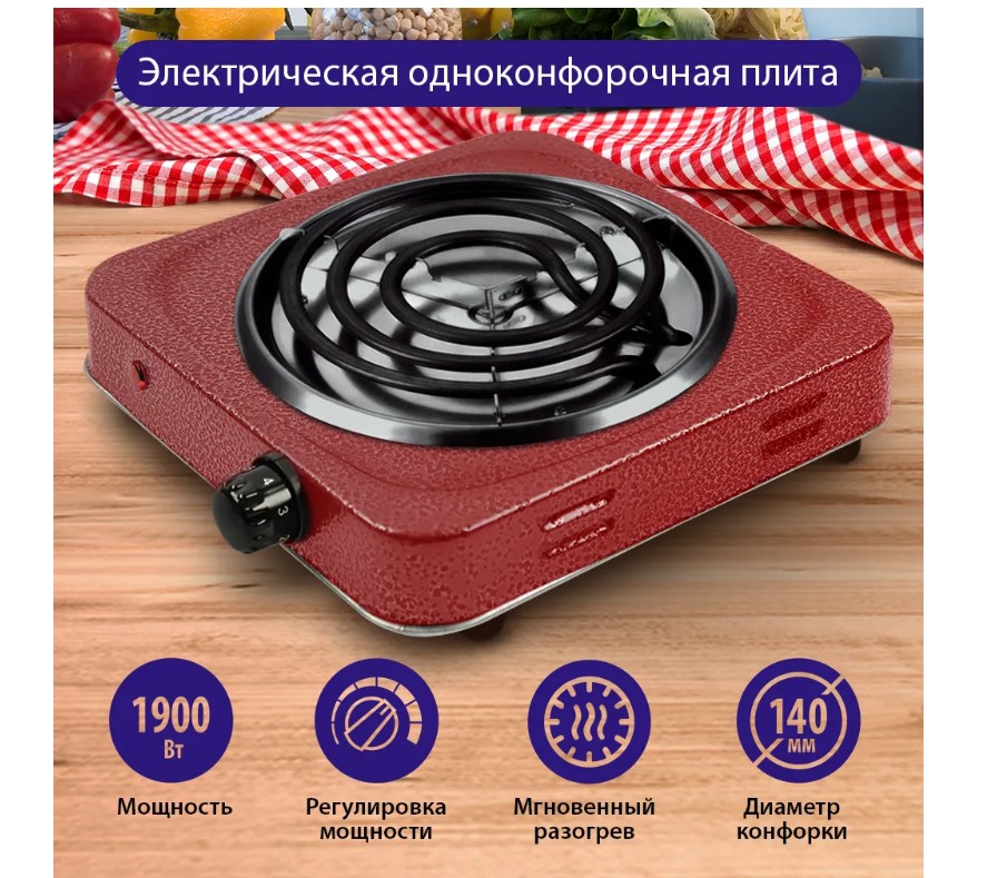 1-конфорочная электрическая плитка с диаметром конфорки 14 см и открытым нагревательным элементом из нержавеющей стали для работы в 3 режимах мощности. Отличное решение для быстрого приготовления пищи при отсутствии стационарной плиты. 3 режима нагрева позволяют легко отрегулировать температурный режим для приготовления любого блюда. Нагревательный элемент из нержавеющей стали обладает отличной теплопроводностью, имеет длительный срок службы, не боится влаги и легко чистится. Компактная электрическая плитка – это отличное решение для дачи или квартиры, где еще не закончен ремонт.