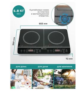 Электрическая индукционная плита Gemlux GL-IP-22L имеет практичный корпус из прочной пластмассы и рабочую поверхность из стеклокерамики с 2 зонами нагрева, под которой находятся медные катушки. Протекающий по ним высокочастотный электрический ток создает переменное магнитное поле, которое наводит вихревые электрические токи в дне наплитной посуды и разогревает ее, а следовательно, и находящуюся в ней пищу.