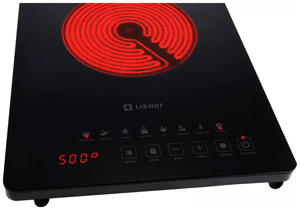 Плита использует инфракрасный нагрев, обеспечивая быстрый и эффективный разогрев, а также экономное потребление электроэнергии.