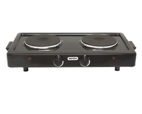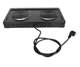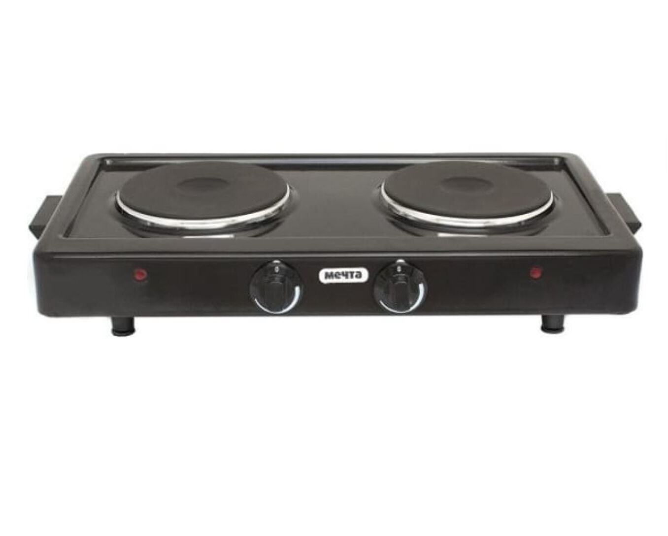 тип конфорок: чугунные; мощность каждой конфорки: 1 кВт, диаметр 14,5 см; бесступенчатое регулирование мощности; индикация включенного состояния электроконфорок; опорные ножки плитки оборудованы вкладышами противоскольжения; стеклоэмалевое покрытие; вес 4,5 кг