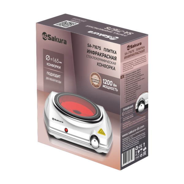 Дополнительные характеристики: размер прибора - 270*275*86мм, максимальная температура нагрева 510-530 С, максимальная нагрузка на конфорку 8кг, световой индикатор