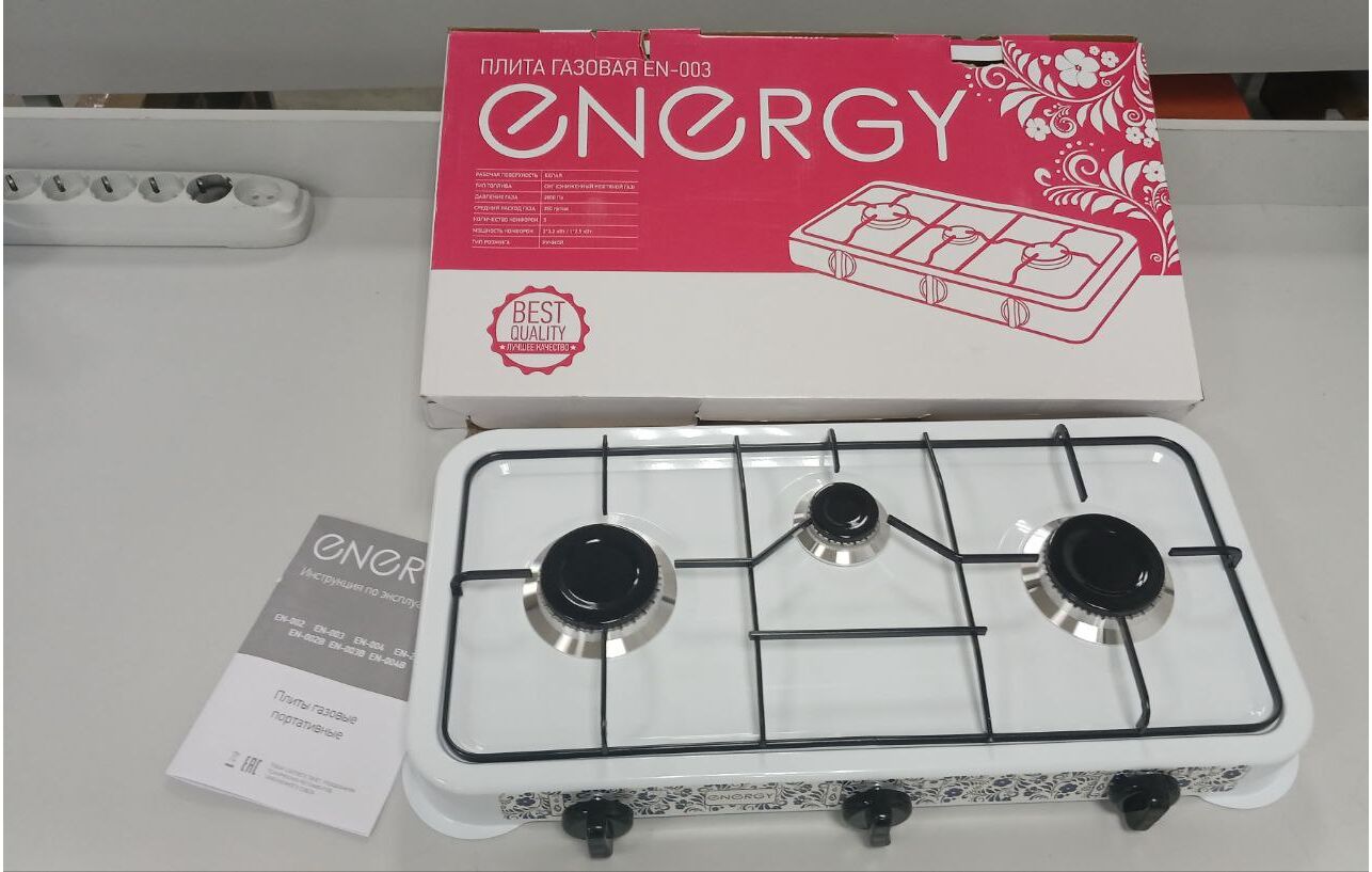 Газовая 3-х конфорочная плита Energy EN-003, 144027 предназначена для приготовления пищи.
