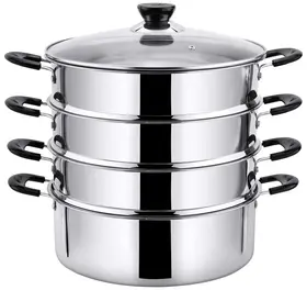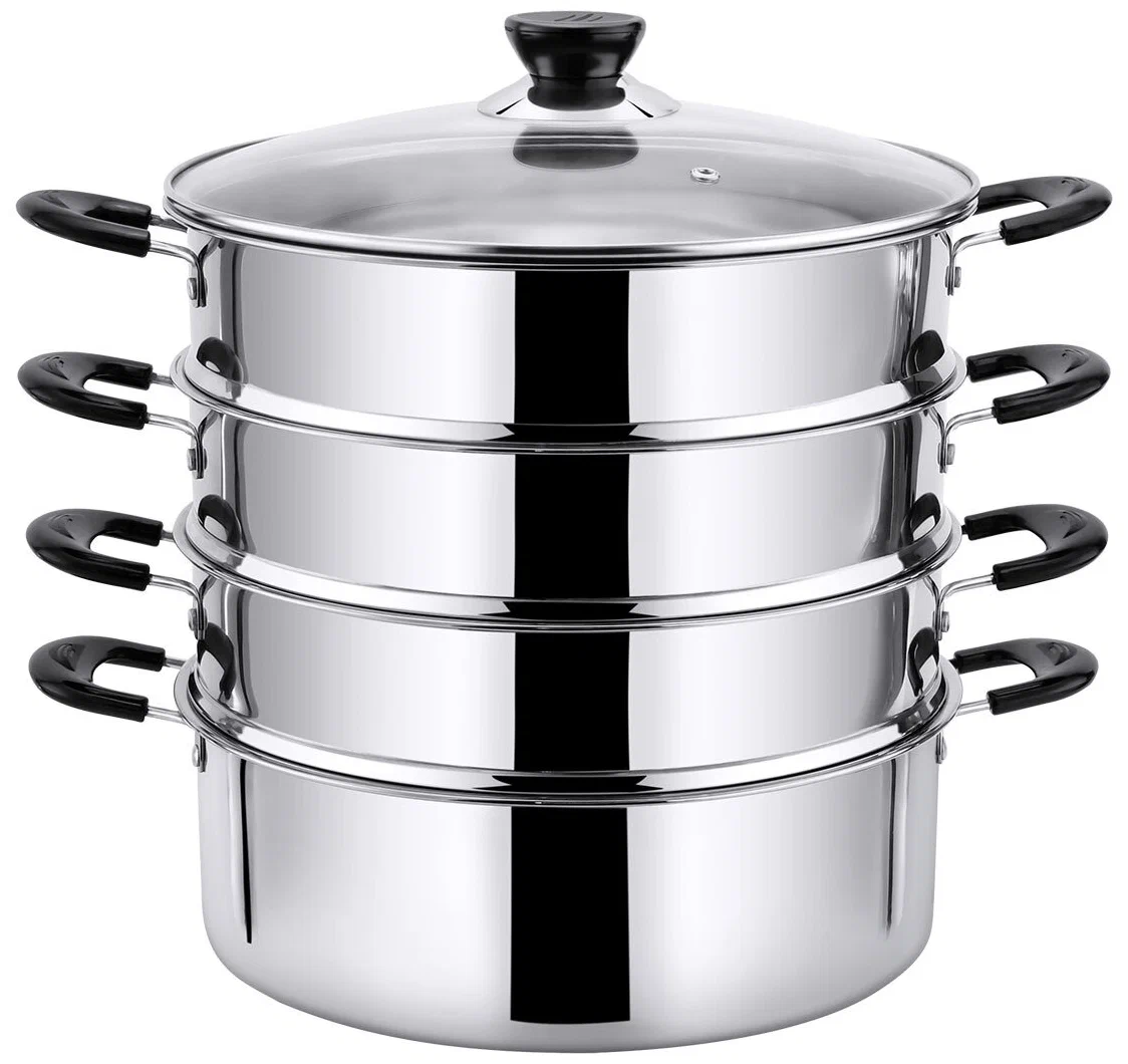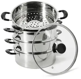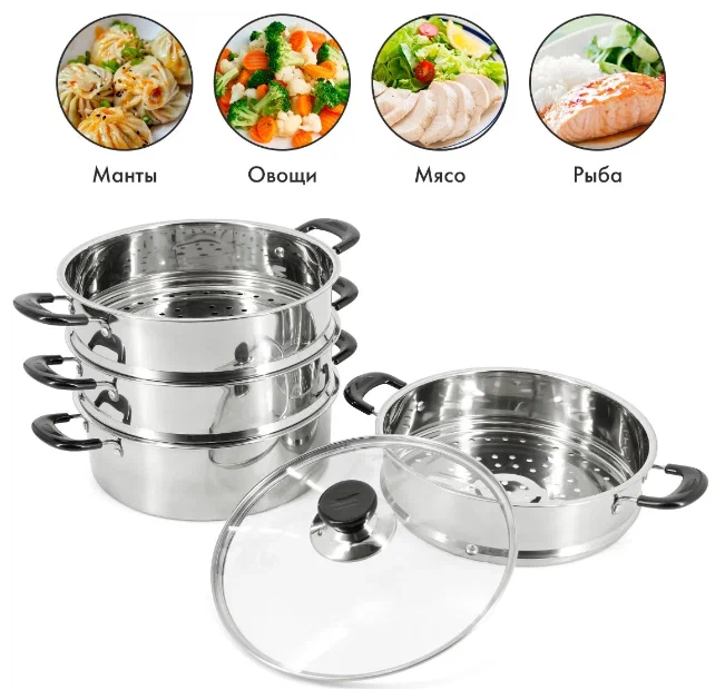 Мантоварка-пароварка Pomi d'Oro P630101 Vapore со стеклянной крышкой. Диаметр 24см. 3 перфорированных яруса, высота 7см. Нижняя часть мантоварки может использоваться как кастрюля, объем 4 литра. Изготовлена из высококачественной нержавеющей стали. Безопасна для человека и не выделяет вредных веществ при повышенных температурах. Крышка изготовлена из термостойкого стекла с отверстием для выпуска пара. Не нагревающиеся бакелитовые ручки. Перед первым использованием тщательно вымойте посуду тёплой водой с использованием моющего средства. Вытрите насухо или полностью высушите. Для гарантированного сохранения блеска стали рекомендуется только ручное мытьё без использования абразивных средств и металлических мочалок. Подходит для всех типов плит, кроме индукционных.