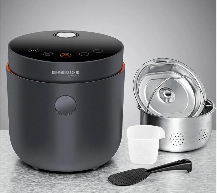 Рисоварка Rommelsbacher Risa чрезвычайно универсальна и подходит для приготовления риса на молоке, ризотто, для варки овощей на пару и для разогрева пищи.