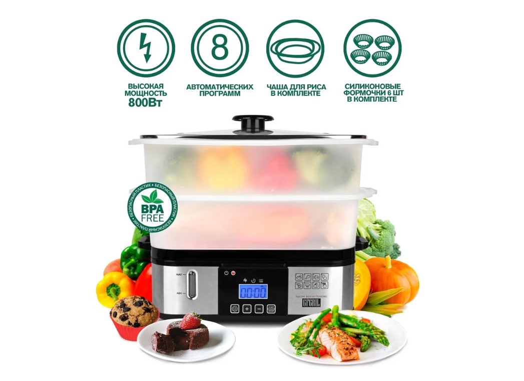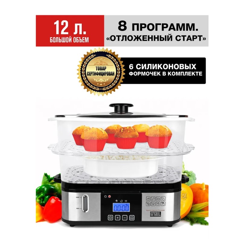 пригодится всем, кого интересует здоровое и при этом вкусное питание. С пароваркой GFS-9D вы можете готовить даже десерты!