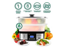 Электронное управление, ЖК-дисплей, 8 предустановленных программ и функция отложенного старта обеспечат легкое управление пароваркой и помогут вам достичь идеального результата.