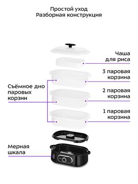документация, контейнер для риса, крышка, паровая корзина - 3 шт